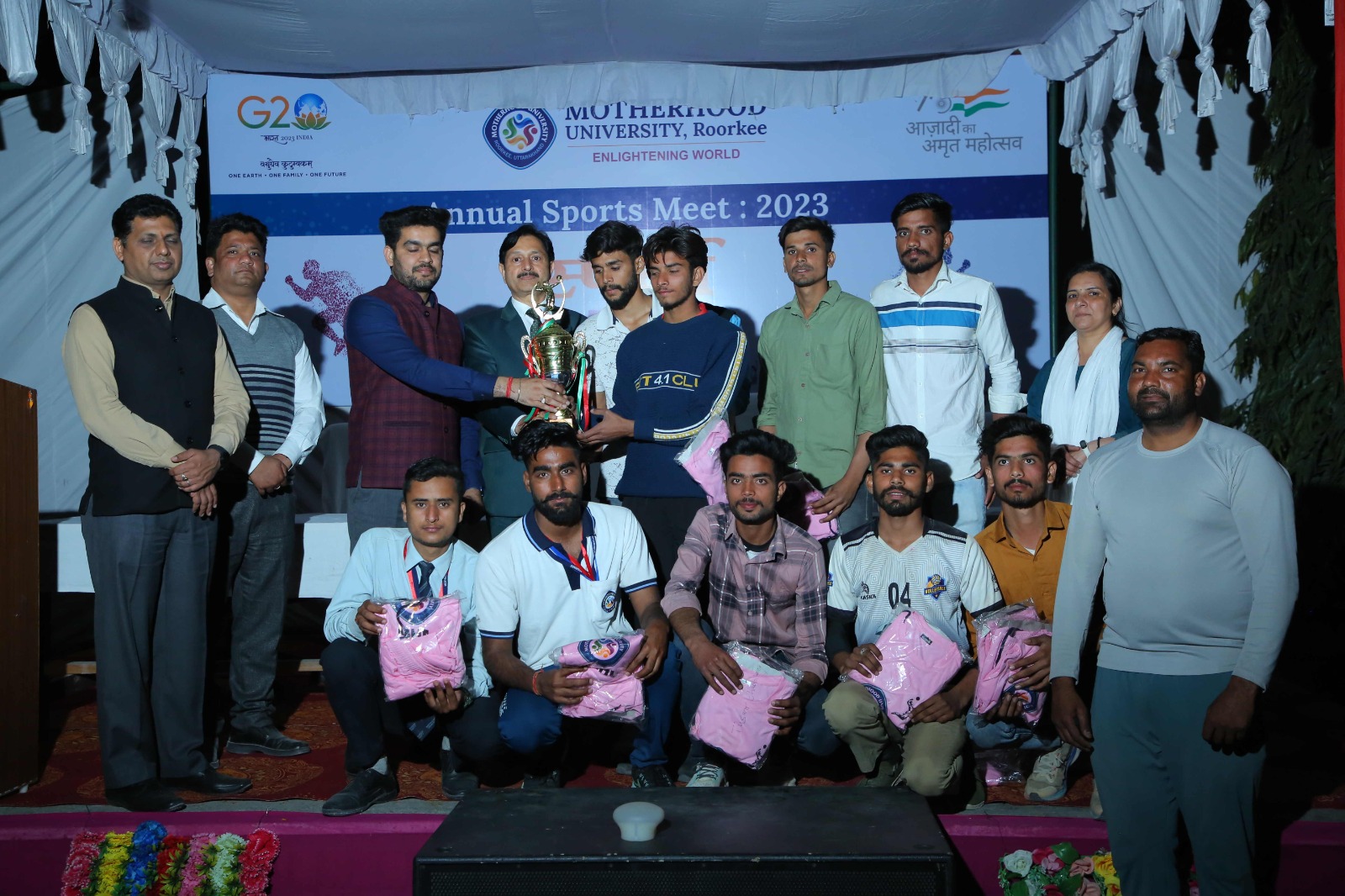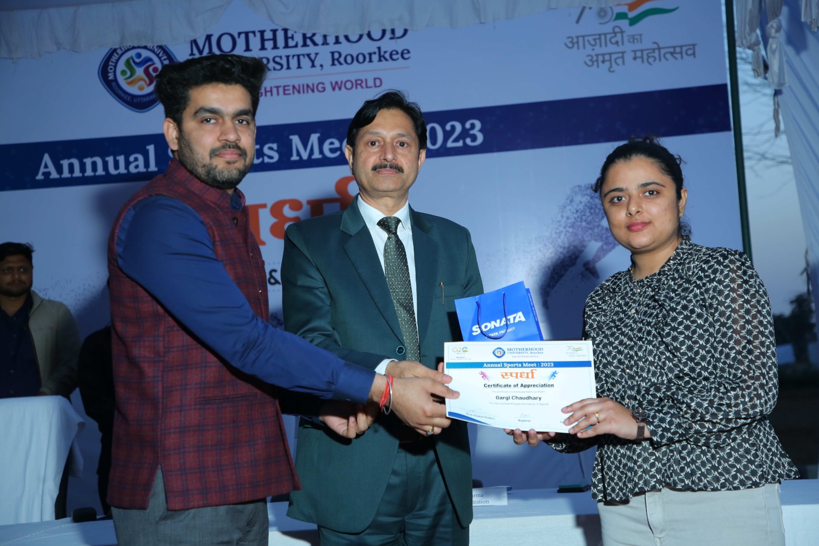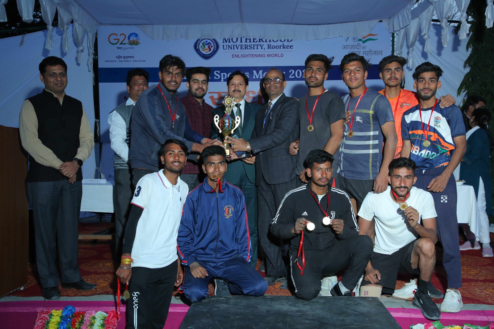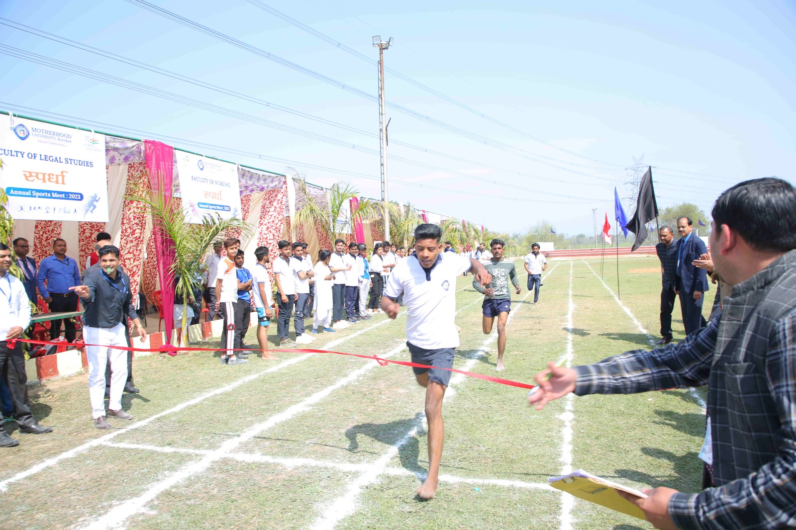 मदरहुड़ विश्वविद्यालय के प्रांगण में दो दिवसीय वार्षिक खेल प्रतिस्पर्धा ‘‘स्पर्धा-2023’’ का शुभारम्भ माननीय कुलपति प्रो० (डॉ०) नरेन्द्र शर्मा एवं निदेशक प्रशासन श्री दीपक शर्मा के द्वारा किया गया, मुख्य अतिथि श्री स्वप्न किशोर (एस०पी० देहात) एव कुलपति, निदेशक प्रशासन ने सर्वप्रथम माँ सरस्वती के समक्ष दीप प्रज्जवलित कर खेल-प्रतियोगिताओं का शुभारम्भ किया गया।  विश्वविद्यालय के विभिन्न संकायों के छात्र-छात्राओं द्वारा सरस्वती वंदना, गणेश वंदना एवं देशभक्ति नृत्य प्रस्तुत किया गया।