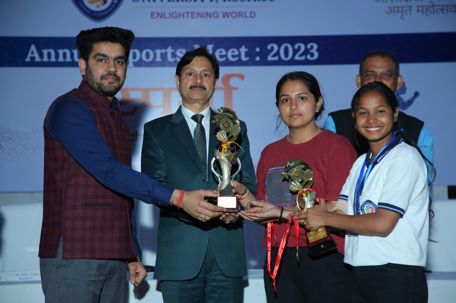 बालक व बालिका डबल्स वर्ग बैडमिन्टन में विज्ञान संकाय से रूस्तम व रवि चौहान प्रथम एवं फार्मेसी संकाय से अश्विनी व शिवेन्द्र द्वितीय स्थान रहे और काजल क्रिस्टियाना, वाशु की जोड़ी प्रथम तनु काम्बोज, नीतू सैनी की जोड़ी द्वितीय स्थान पर रहे। खो-खो में बालक वर्ग में फार्मेसी संकाय व पैरामैडिकल संकाय प्रथम व द्वितीय स्थान पर रहे और बालिका वर्ग में फार्मेसी संकाय व विधि संकाय प्रथम व द्वितीय स्थान पर रहे। कबड्डी का खिताब विधि संकाय के नाम रहा वही द्वितीय स्थान पर फार्मेसी संकाय को संतोष करना पड़ा। वालीबाल प्रतियोगिता में घमासान देखने को मिला और विज्ञान संकाय ने प्रथम स्थान प्राप्त किया एवं वाणिज्य संकाय ने द्वितीय स्थान प्राप्त किया।