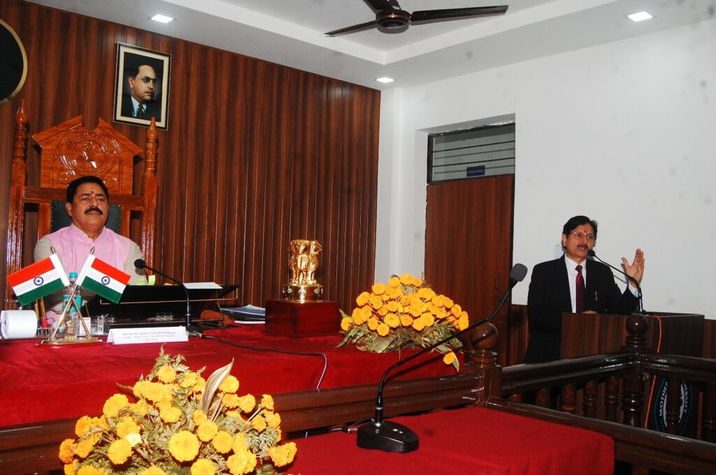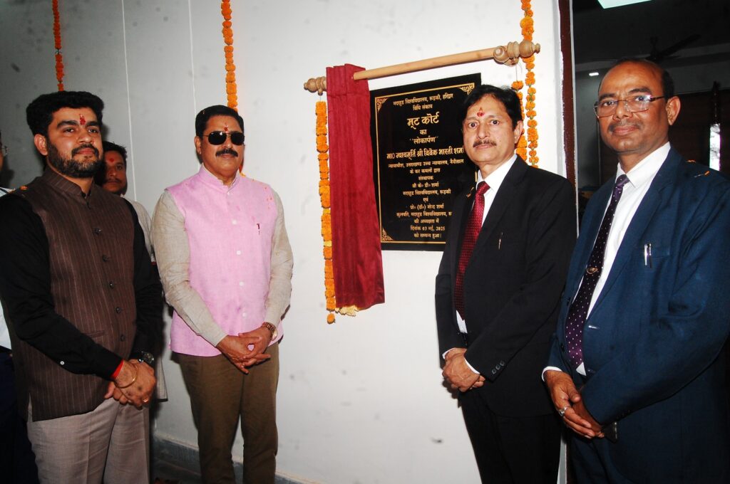 माननीय न्यायमूर्ति श्री विवेक भारती शर्मा ने विद्यार्थियों का उत्साह वर्धन करते हुए कहां की विधि के क्षेत्र में अवसर प्रर्याप्त रूप में उपलब्ध है। धैर्यता पूर्वक अपने कर्त्तव्यो का निर्वहन करने की आवश्यकता है साथ ही विधि के क्षेत्र में वर्तमान कालखण्ड में जिस प्रकार से आर्थिक स्वरूप बदला है, उससे नैतिक मूल्यों का ह्यस हो रहा है। इस दिशा में हमारा यह कर्त्तव्य बनता है कि हम नैतिक मूल्यो को बनाए रखे। साथ ही उन्होंने कहा कि अच्छा अधिवक्ता बनने के लिए यह आवश्यक है कि वाद के तथ्यों को अच्छे से समझे और उसके उपरान्त ही उपयुक्त विधि एवं पूर्व निणयो का प्रयोग करें। बिना तथ्यों को समझे अच्छा अधिवक्ता बनना संभव नही है। माननीय न्यायमूर्ति श्री विवेक भारती शर्मा ने बताया की विद्यार्थियों के लिए बार कौंसिल ऑफ़ इंडिया ने शिक्षा में महत्वपूर्ण बदलाव किए जिनके द्वारा शिक्षा का स्वरूप भी परिवर्तित हुआ है। भारतीय विधिक शिक्षा प्रणाली में, मूट कोर्ट को 1985 से भारतीय विश्वविद्यालयों में विधिक शिक्षा के पाठ्यक्रम का एक अभिन्न अंग बनाया गया हैं। मूट कोर्ट विधिक शिक्षा का एक रूप है, जिसमें किसी दिए गए कानूनी मुकदमे या समस्या पर शोध, लेखन और मौखिक तर्क प्रस्तुति आदि को शामिल किया जाता है।